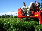 一番茶収穫後に大型クローラの機械でお茶の木を切りつめしました。